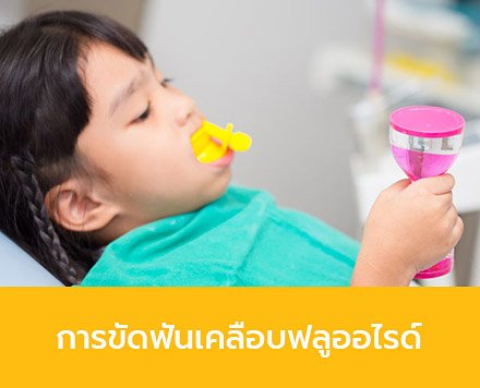 การขัดฟันเคลือบฟลูออไรด์ คือการให้ฟลูออไรด์เพื่อ เสริมสร้างความแข็งแรงให้กับฟัน ทันตแพทย์จะเป็น ผู้แนะนำและเลือกใช้ฟลูออไรด์ที่เหมาะสมให้กับเด็ก แต่ละราย