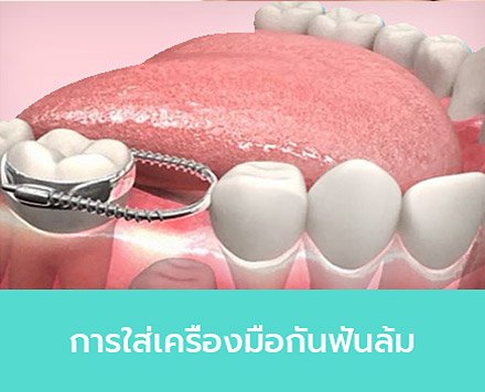 การใส่เครื่องมือกันฟันล้ม หรือเครื่องมือกัน ช่องว่าง (Space Maintainer or Space Regainer) เพื่อรักษาช่องว่างไว้ ให้ฟันแท้ขึ้น ได้ตามธรรมชาติ จำเป็นในกรณี ที่มีการสูญเสียฟันน้ำนม ก่อนกำหนด