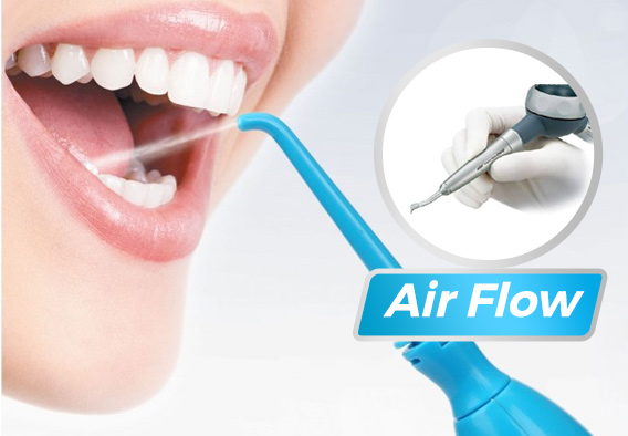 อุปกรณ์ทางทันตกรรมที่ใช้ทำความสะอาดฟัน ช่วยให้ขจัดคราบบุหรี่ ชา กาแฟ ได้ง่ายขึ้น ด้วยวิธีพ่นละอองน้ำและผงขัดชนิดละเอียด ประหยัดเวลามากกว่าการใช้เครื่องขูดหินปูนทั่วไป