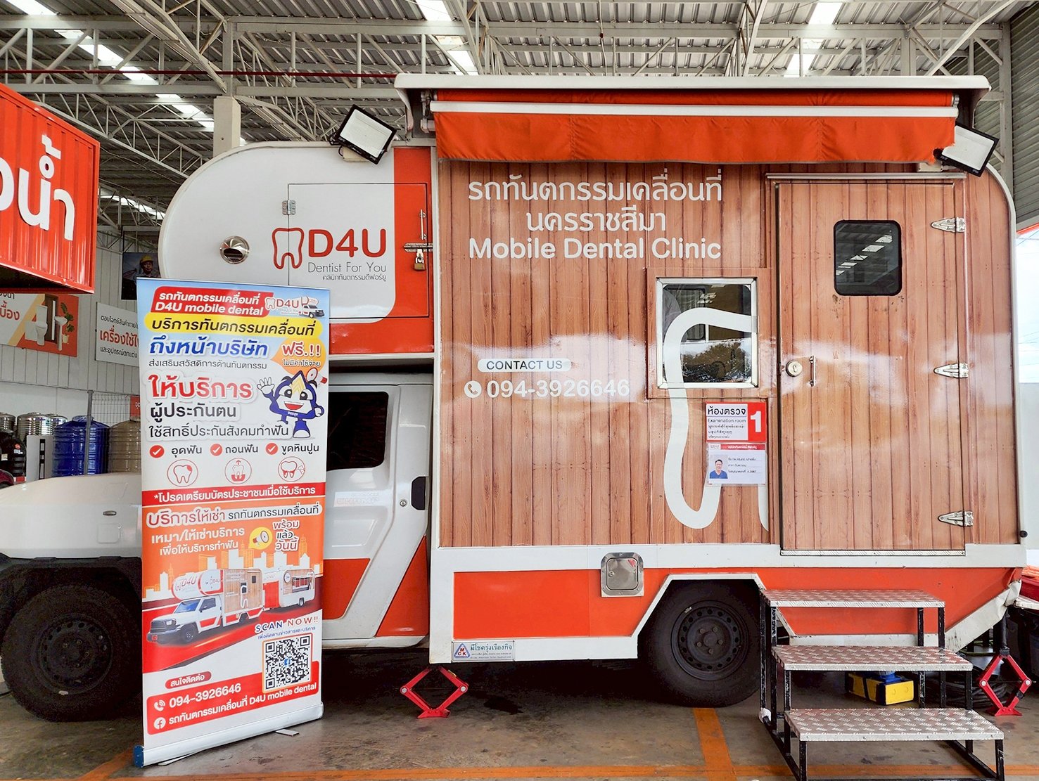 ให้บริการถึงหน้าสถานประกอบการ ครอบคลุมการให้บริการทั้งภาคตะวันออกเฉียงเหนือ(ภาคอีสาน) อุปกรณ์ภายในครบครัน ทันสมัย ปลอดภัย ได้มาตรฐาน รองรับงานบริการ อุดฟัน ถอนฟัน ขูดหินปูน สามารถใช้สิทธิ์ประกันสังคมได้